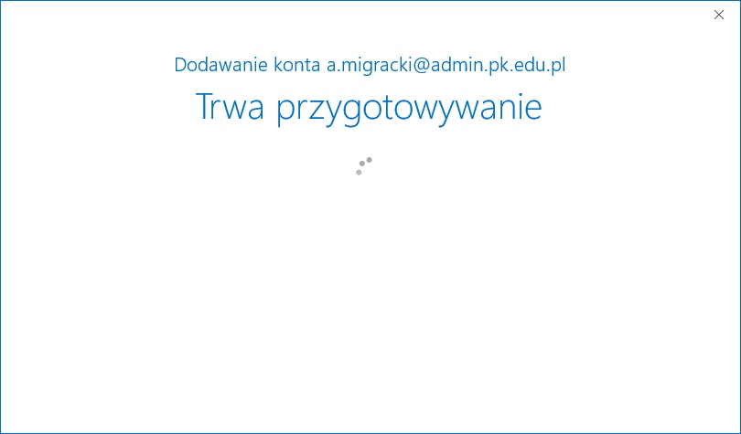 Program nawiązuje połączenie z serwerem i pobiera informacje niezbędne do konfiguracji konta, co trwa przez chwilę. Należy cierpliwie czekać.